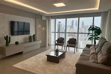 Apartamento a venda, com 4 dormitórios, sendo duas suítes, com 149,43m², mobiliado, decorado e equipado, com churrasqueira a carvão, no Edifício Sun Beach, em Balneário Camboriú - SC., pronto para morar.