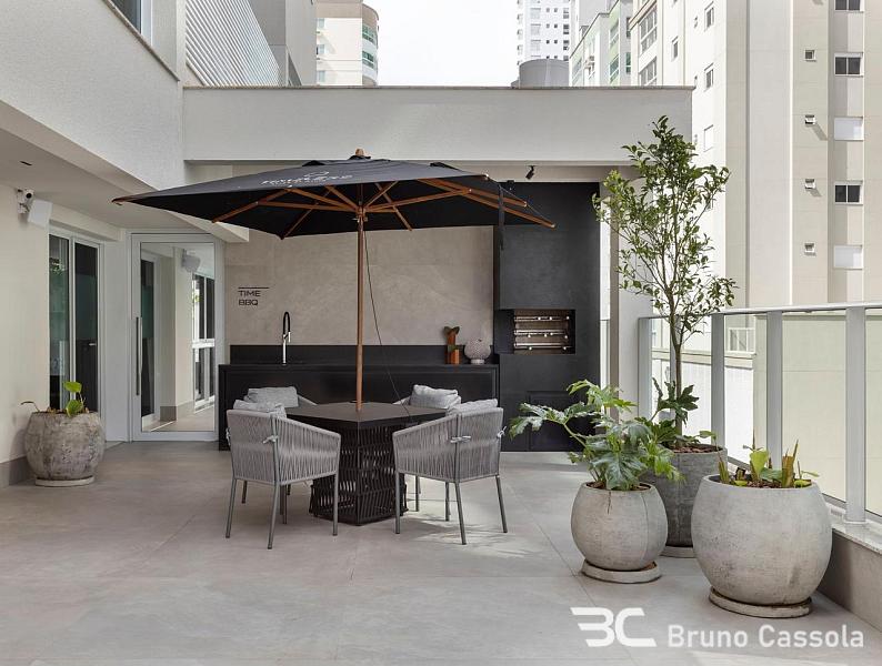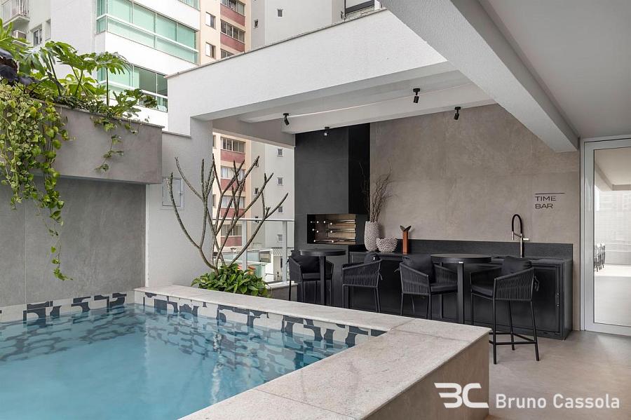 Apartamento de alto padrão (em fase de mobília) com 143 m² privativos, 4 suítes, amplo living integrado com 50 m², sala de estar, sala de jantar, cozinha gourmet com churrasqueira a carvão, 3 vagas de garagem.