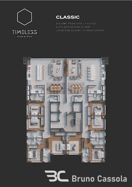 - Classic Top: 188 m² | 4 suítes | andar inteiro