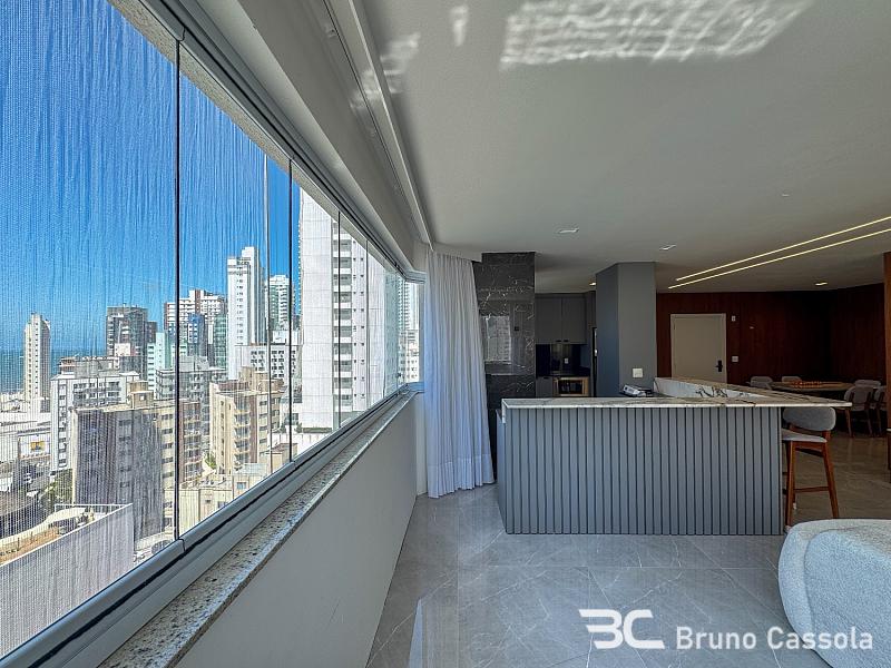 Apartamento novo, mobiliado e nunca habitado, no Torre Di Bueno, região Barra Sul/Centro de Balneário Camboriú. Planta ampla com living integrado, churrasqueira a carvão, 3 suítes e 3 vagas — a poucos metros do mar e cercado por todo o comércio da região.