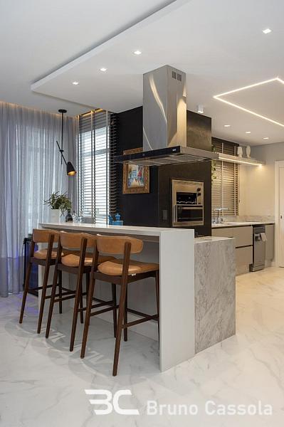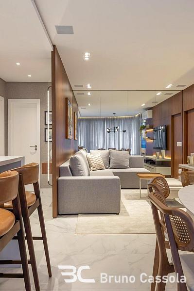 O Apartamento está impecável, pouquissímas vezes usado, com móveis planejados em todos os ambientes, de muita qualidade e requinte. O imóvel possui um living todo integrado, com sala de estar/tv, jantar e cozinha, e também possui uma churrasqueira elétrica.