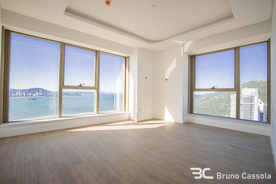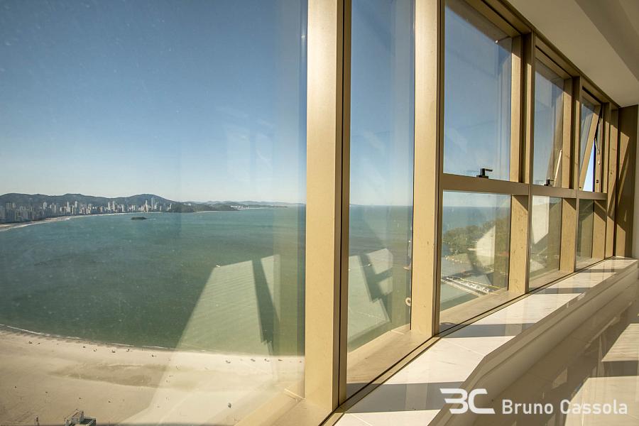 Apartamento 4 suítes em andar alto à venda no luxuoso empreendimento Yachthouse by Pininfarina, da construtora Pasqualotto & GT em Balneário Camboriú. Com uma testada de 20 metros de frente para o mar, oferece vista panorâmica, de um lado para a praia e de outro para a Mata Atlântica e Marina.