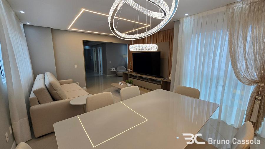 Apartamento com 103 m² de área privativa, 03 dormitórios, sendo 02 demi-suítes, 02 vagas de garagem. Imóvel recém-reformado, mobiliado e decorado, com apenas um apartamento por andar e excelente infraestrutura de lazer.