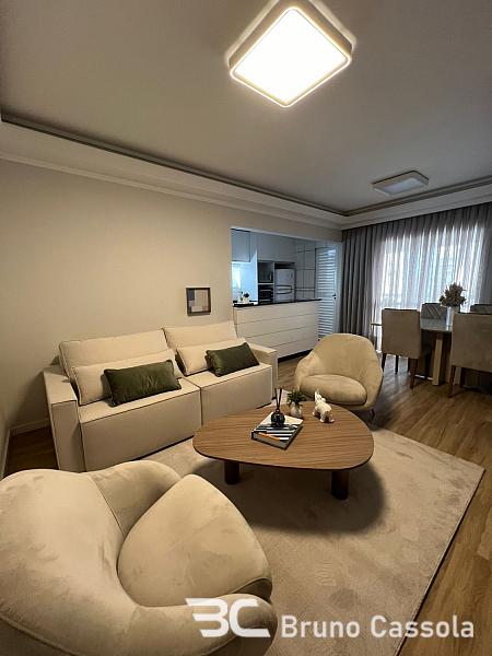 Apartamento com 87m² de área privativa, 03 dormitórios, sendo 01 suíte. Imóvel mobiliado e decorado, com planta bem distribuída e ambientes aconchegantes. Conta com sacada equipada com churrasqueira a carvão e 02 vagas de garagem.