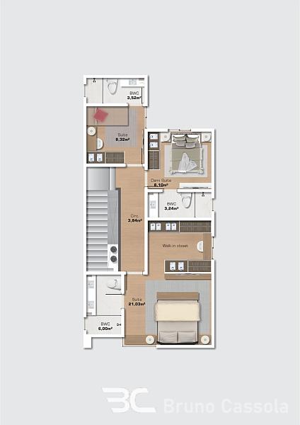 - Espaço e Privacidade: São 4 suítes amplas, garantindo privacidade e conforto para toda a família. Perfeito para quem não abre mão de ter suítes individuais para cada membro ou para receber com requinte.