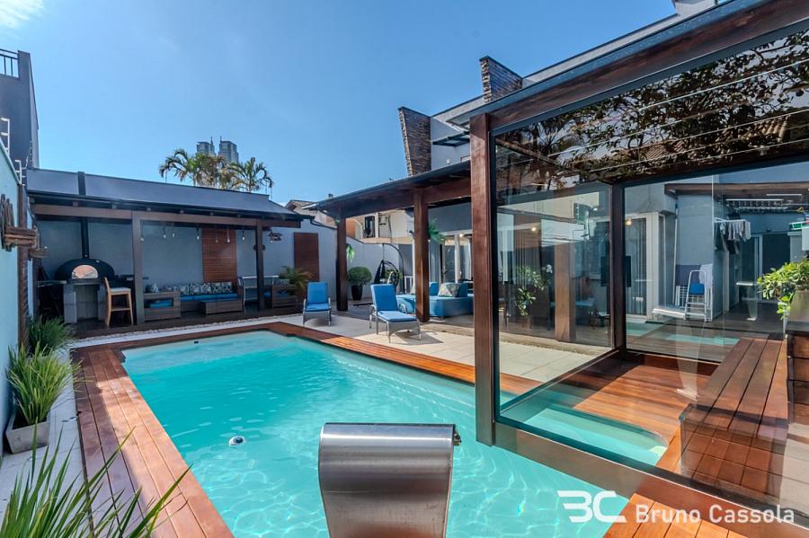 Imóvel à venda no Bairro da Barra em Balneário Camboriú com localização que permite acesso direto às praias de Laranjeiras, Taquaras, Estaleiro, Estaleirinho, Praia Central e Barra Sul. A residência possui três suítes e é comercializada com toda a mobília e decoração inclusas conforme as fotos. A infraestrutura interna conta com churrasqueira a carvão, piscina privativa e sauna instalada. A propriedade dispõe de garagem com extensão ampla para veículos de grande porte. A unidade está disponível para visitação imediata e apresenta toda a documentação regular para transferência de titularidade ou financiamento bancário.