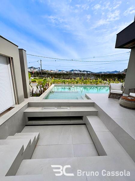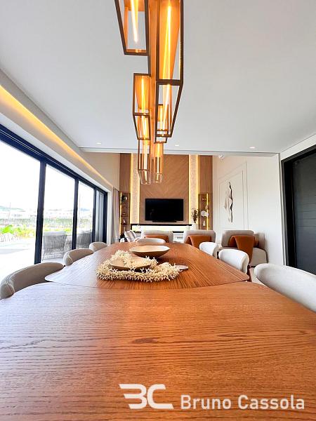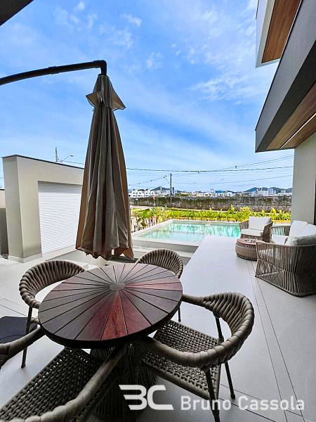 Residência de alto padrão localizada no Condomínio Caledônia, em Camboriú/SC, com 461,50m² privativos, 4 suítes amplas (incluindo suíte master com closet), ambientes integrados, piscina privativa e 4 vagas de garagem.
