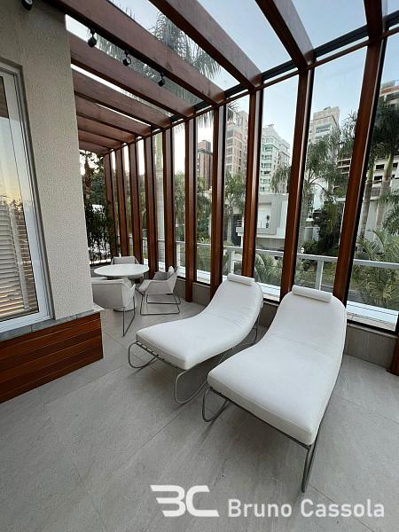 Varanda da suíte master: 2 espreguiçadeiras e mesa com 4 cadeiras (Artefacto).