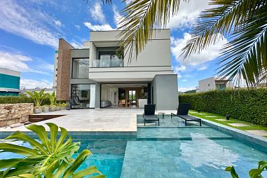 Casa à venda na Praia do Estaleiro de alto padrão, mobiliada e decorada no Condomínio Vivendas do Atlântico, em Balneário Camboriú. Esta casa foi planejada para quem busca conforto e funcionalidade em um ambiente integrado à natureza. Com 411 m² de área privativa e 650 m² de área total, ela oferece espaço de sobra para viver bem e receber com conforto.