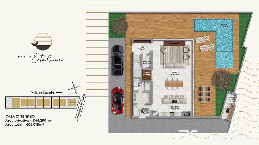 O Pátio Estaleiro é um condomínio exclusivo que combina alto padrão, integração com a natureza e exclusividade em cada detalhe. Localizado a apenas 120 metros do mar, conta com apenas oito residências exclusivas assinadas pela R21 Empreendimentos, reconhecida por seu padrão de qualidade construtiva e atenção aos acabamentos, pensadas para estar completamente integradas ao ambiente natural ao redor, proporcionando tranquilidade e um estilo de vida harmonioso.