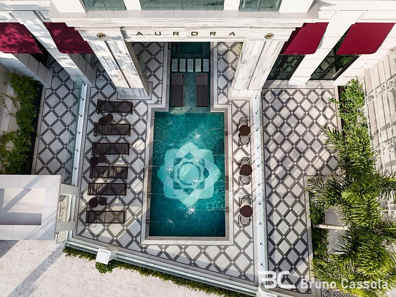 O Aurora Exclusive Home possui um estilo arquitetônico neoclássico, com padrão de acabamento EMBRAED. Infraestrutura de lazer com 2.200 m² de área distribuídos em 3 pavimentos, incluindo 3 piscinas de frente para o mar. Está localizado na Barra Sul, região mais nobre e exclusiva de Balneário Camboriú.