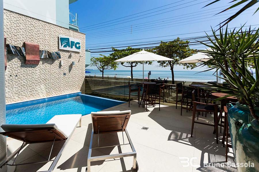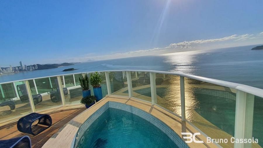 Cobertura Duplex frente mar, finamente mobiliada, com uma vista deslumbrante para a praia de Balneário Camboriú à venda no empreendimento Gran Felicitá. O piso inferior é composto por 3 suítes sendo duas com vista para o mar, living integrado com sala de estar, jantar e cozinha, área de serviço e lavabo. No piso superior, ampla área social com espaço gourmet e churrasqueira, hidromassagem, living e piscina privativa. Imóvel exclusivo, em localização nobre, da construtora FG Empreendimentos. Um verdadeiro refúgio à beira mar!