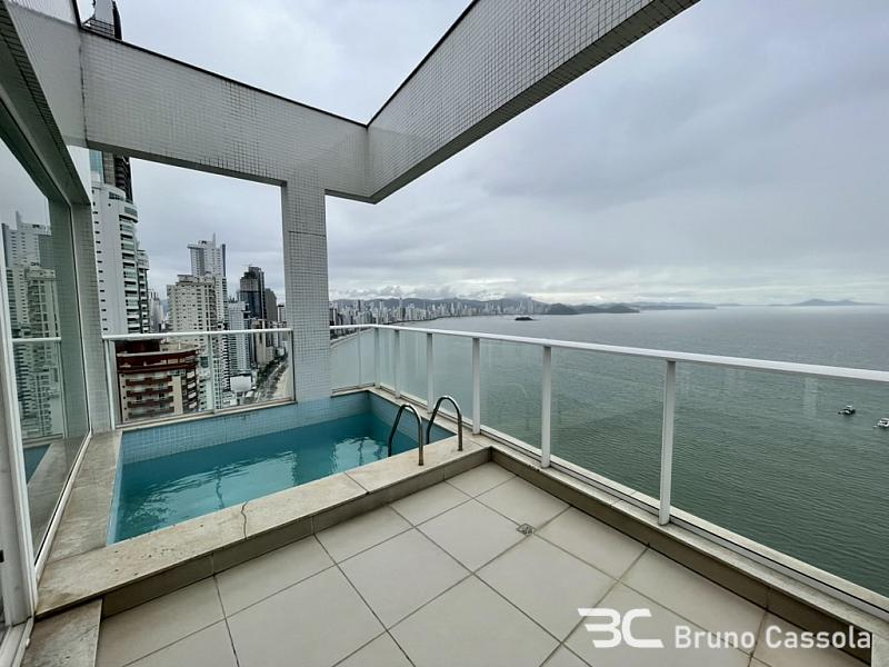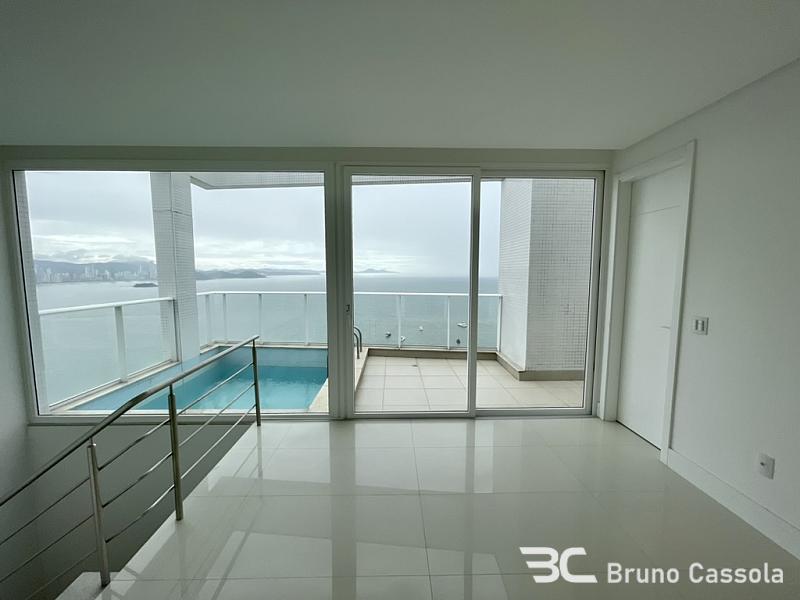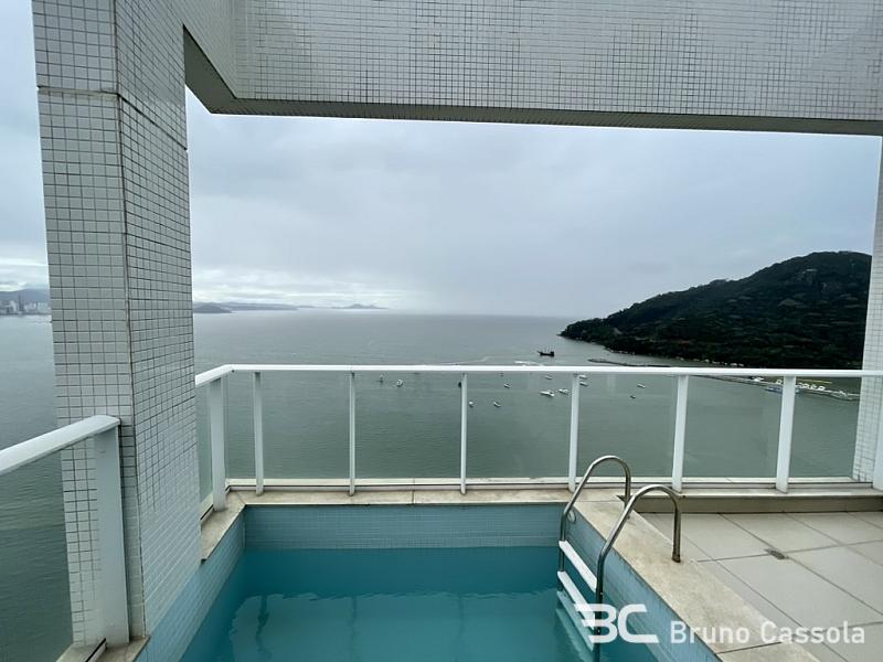 Cobertura triplex frente mar com vista panorâmica para toda a praia, 4 suítes + dependência, 264 m² privativos, piscina privativa frente mar, espaço gourmet com churrasqueira a carvão.