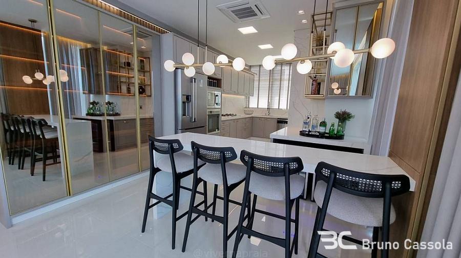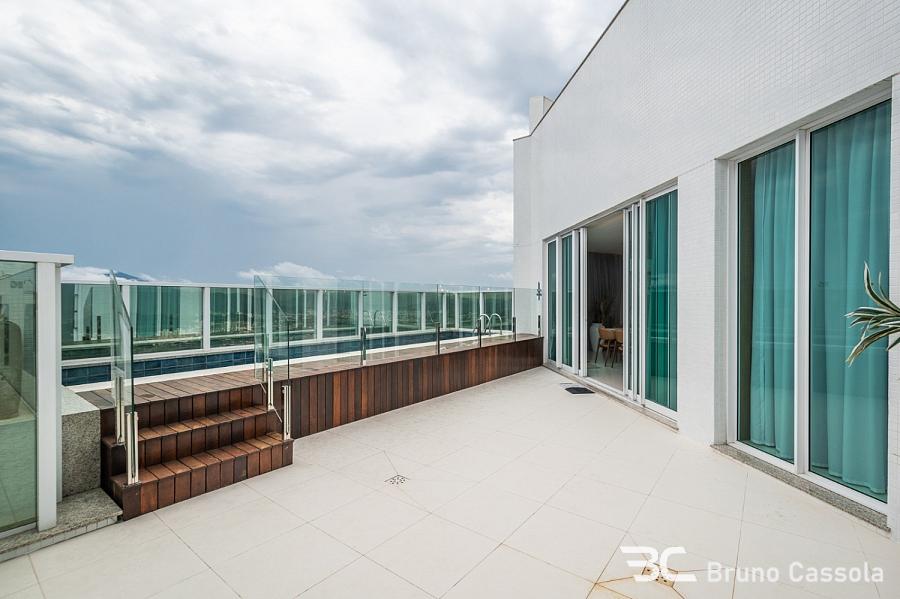 Cobertura horizontal com 4 suítes sendo uma master com closet e hidromassagem, 277 m² privativos, terraço com piscina privativa, churrasqueira a carvão e vista para o mar.