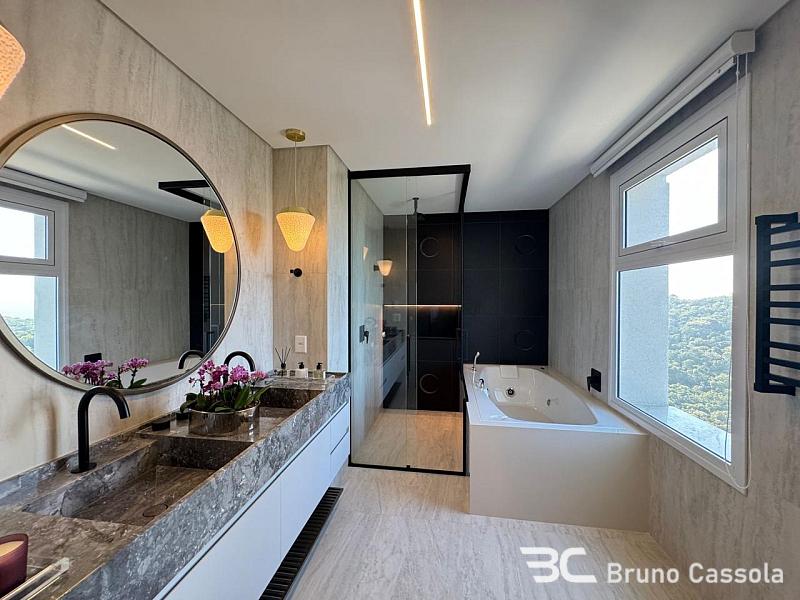 SANTÉ – COBERTURA DUPLEX: Com 4 suítes, 320,00 m², piscina privativa com vista panorâmica, living amplo, cozinha moderna e ambientes sociais como sala de estar e sala de jantar integrados. Os acabamentos são de altíssimo padrão a churrasqueira e a banheira de hidromassagem são detalhes que elevam a experiência. A vista panorâmica que pode ser apreciada de diversos pontos do imóvel. Para completar, a unidade oferece 5 vagas de garagem, garantindo comodidade e segurança.