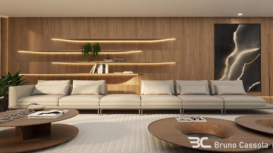 Piso em porcelanato indiano nas áreas comuns do apartamento e vinílico nos ambientes íntimos, portas Trada (eleita a melhor do país, com isolamento acústico e madeira maciça laqueada), infraestrutura para aspiração central, automação e aquecimento nos pisos dos banheiros. Com uma testada de 40 metros de frente para o mar, oferece vista panorâmica, de um lado para a praia e de outro para a Mata Atlântica e Marina.